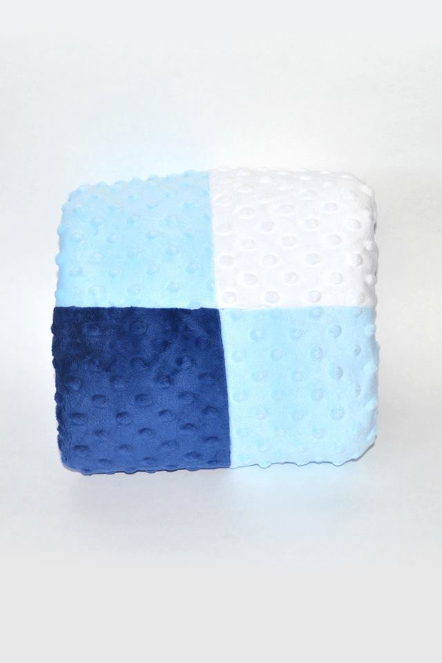 Couverture en damier – Bleu Bébé – Bleu Foncé – Blanc avec broderie